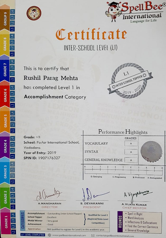 Won Best School Level Entry in Essay Competition organized by PCRA 2021