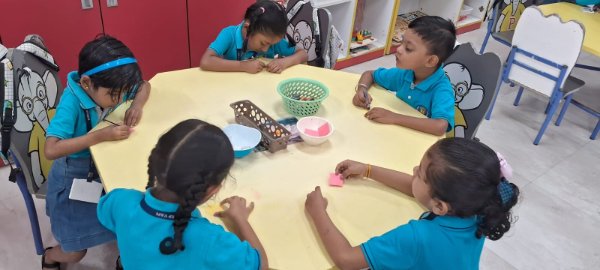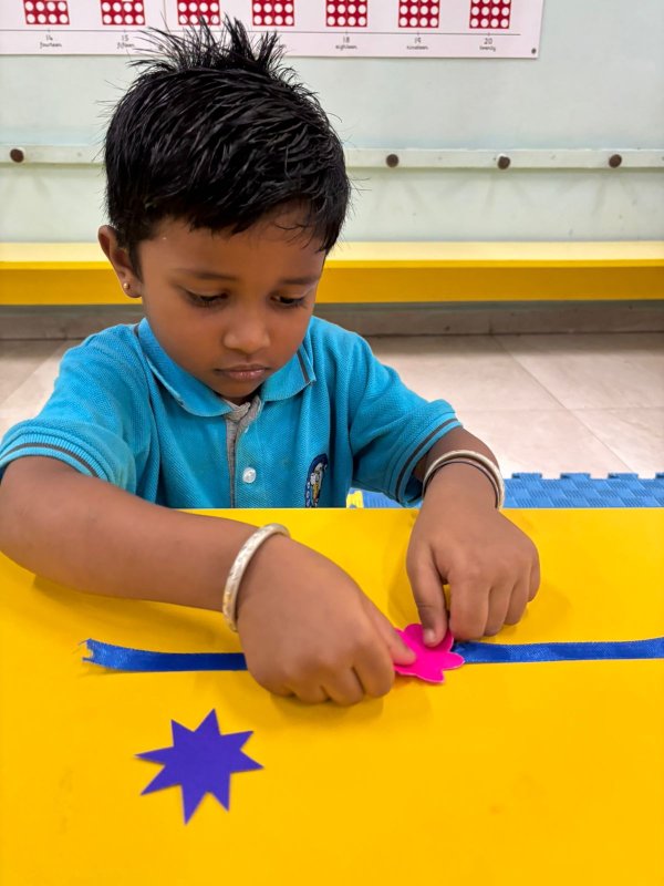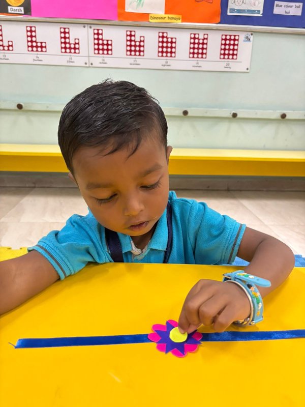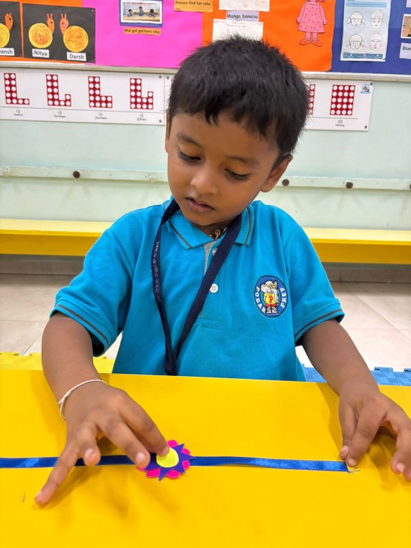 At Podar Prep, through the simple yet meaningful hands-on activity of making a Rakhi, our children learn the importance of family bonds and the responsibilities that come with them during the Raksha Bandhan celebration. This activity not only nurtures creativity but also instills values of protection, care, and mutual respect, helping children appreciate the significance of their relationship with siblings.