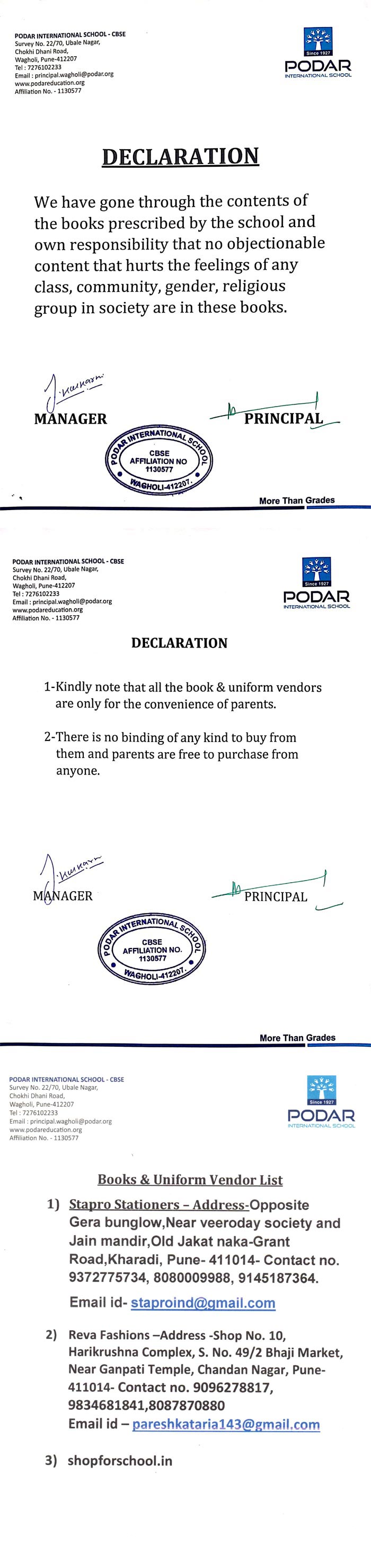 CBSE Declaration Letter in Wagholi Pune, Maharashtra