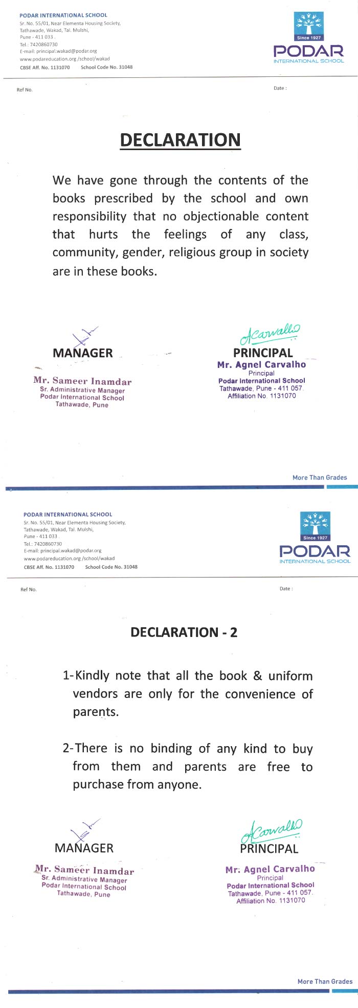 CBSE Declaration Letter in Tathawade, Pune, Maharashtra
