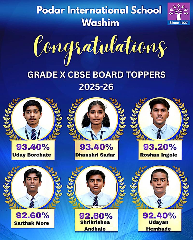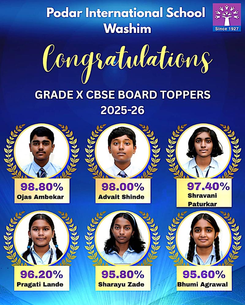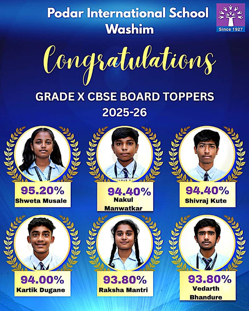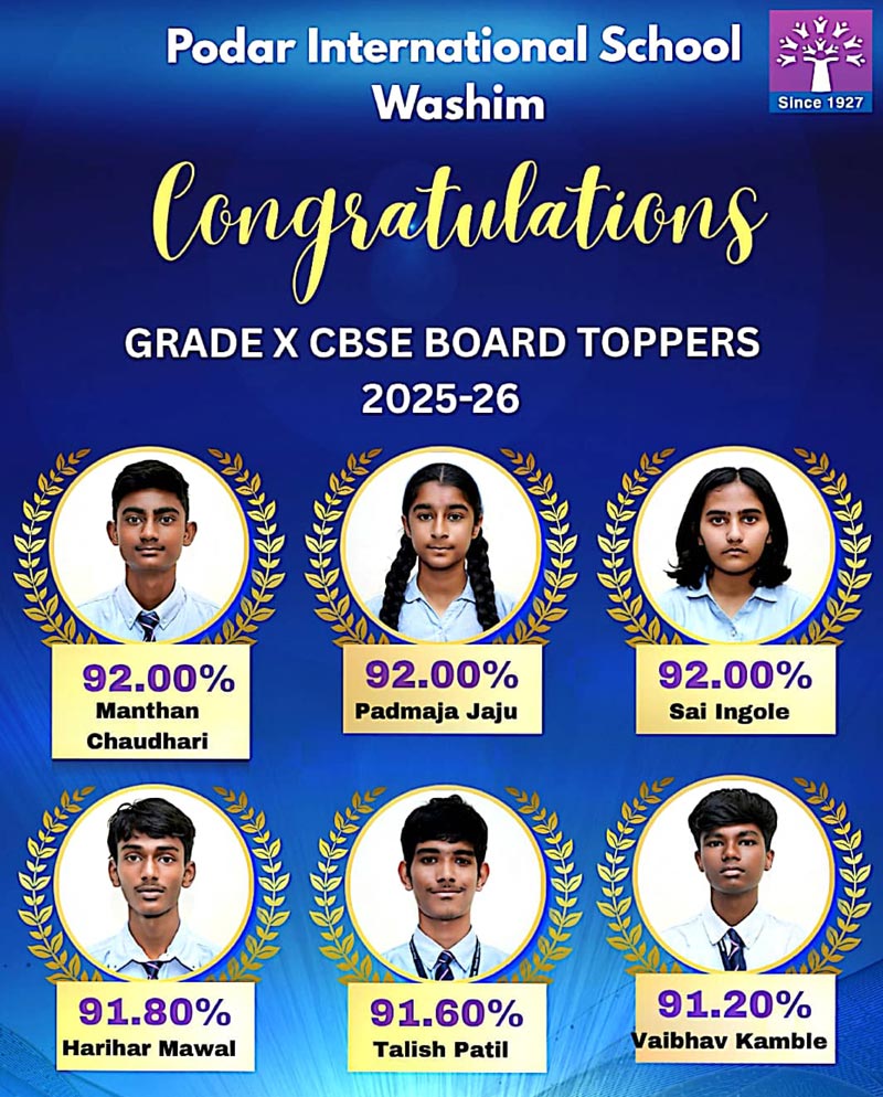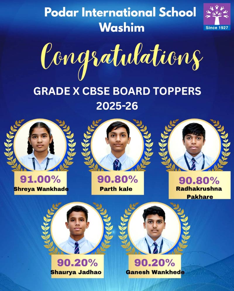 Podar International School Washim celebrates the outstanding success of its students in the CBSE Grade 10 Board Exams 2025–2026.