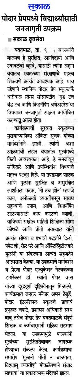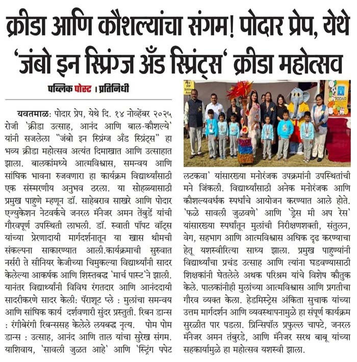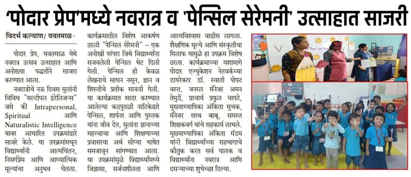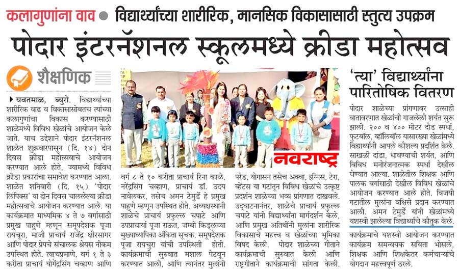 Podar Prep Media Coverage Yavatmal, Maharashtra